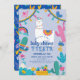This cute boy baby shower fiesta invitation features a light blue background with a llama/alpaca, birds, cactus, rainbow, mountains, and flowers. The reverse side features a blue background with floral patterns. Personalise it for your needs. You can find matching products at my store.