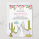 Easily personalise this cute invitation with your own event information. Design features cute and colourful llama and cacti artwork with pink flowers. Purchase as instant download or have invitations shipped directly to your home.