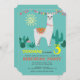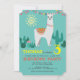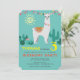 A colourful Birthday party invitation with a funny llama on a fiesta and cacti background.