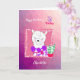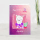 Fun, super cute personalized greeting card for girls who think llamas are llamazing! in purple and pink tones.