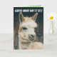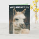 Cute photo of a llama who is saying, "Guess what day it is?!" Inside it says, "Well, llama tell you, it ain't hump day. It's your birthday!!! It's pump day! As in all pumped up. Enjoy!" You can change the text to whatever you want.