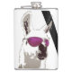 The flask itself is fine. It’s a cheap flask, obviously bought in bulk, however am prepared to overlook that. Given that it is a personalized item, I would have liked to have seen gift boxing instead of the generic packaging. Terrible printing, and/or quality. It’s a cheap, tacky vinyl. It is not cut straight and is also applied in a way that it is overhanging the bottom, causing the glue to catch on items and it will eventually roll and tear, damaging the wrap.