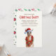 Llama in a Santa Hat Poinsettias Christmas Party Invitation
