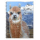 Fun llama image knitting or fiber journal. A beautiful rust brown llama with white face is looking out at you from the front of this spiral-bound notebook. A photo of the Andes mountain range is the background image. Personalize with a name and use as a knitting journal, record of yarn purchases and uses, or anything.