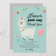 Cute llama theme birthday party invitation for your child! Illustration of a llama with a cute smiley face with a party hat and colourful decorations around her neck. There are flower and balloon around her. The text says "Llama just say thank you." The wording on the card thanks the guests for the gifts and coming. Great for a girl's birthday party. Cute and whimsical design. Original illustration and design by Namibear. ©namibear