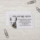 Llama business cards with knit stitches background. Customize black text in two places with bolder, modern printing at the top for the business name. All other information is in paragraph form next to a fun, black and white llama face. Perfect for a specialty yarn shop, knitting teacher, fiber artist, or llama farmer.
