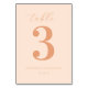 This elegant table card design exudes a soft, romantic charm with its minimalist aesthetic and pastel peach color palette. The large, ornate number "3" takes center stage, complemented by delicate cursive typography that adds an air of sophistication. Perfect for a wedding setting, the understated yet stylish layout creates a warm and inviting atmosphere, ensuring your guests feel welcomed and part of a special celebration. Its clean lines and gentle hues make it versatile for various decor themes, effortlessly blending into any event ambiance.