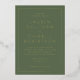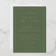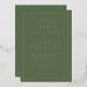 This elegant wedding invitation features a sophisticated design with a rich, dark green background and gold typography that exudes timeless charm. The clean, classic layout highlights the names in a prominent font, creating an air of formality and grace. Perfect for couples seeking a refined and traditional aesthetic, this invitation sets the tone for an unforgettable celebration. Its simple yet luxurious style ensures it will be cherished as a keepsake long after the big day.