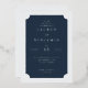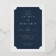 This elegant wedding invitation features a sophisticated navy blue background with crisp white text, creating an air of timeless elegance. The clean and classic typography complements the formal layout, making it perfect for a refined celebration. With its simple yet stylish design, this invitation exudes a sense of grace and anticipation, ideal for marking a special life moment like a wedding. It offers customizable areas to personalize details, ensuring your unique event shines through in every detail.