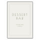 This elegant tabletop sign features a minimalist design perfect for a wedding dessert bar. The clean, modern typography and simple layout create an inviting atmosphere, encouraging guests to indulge in sweet treats. With its soft color palette and understated charm, it adds a touch of sophistication to any celebration. Ideal for weddings or special events, this sign effortlessly complements the overall decor while maintaining a timeless appeal.