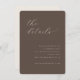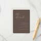 This elegant wedding enclosure card features a sophisticated and minimalist design, perfect for conveying essential details with grace. The soft brown background pairs beautifully with the flowing cursive typography, creating an air of timeless elegance and refinement. Ideal for couples seeking a classic yet modern aesthetic, this card exudes warmth and sophistication, ensuring your guests feel well-informed in style. Its clean layout allows for easy customization to fit various wedding themes, making it a versatile addition to any celebration.