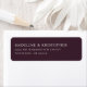 This elegant return address label design features a sophisticated maroon background with clean, classic typography that exudes timeless charm. The minimalist style focuses on simplicity and refinement, making it perfect for wedding stationery or formal correspondence. With its understated elegance, this design conveys a sense of grace and poise, ideal for those who appreciate subtle sophistication in their invitations and personal touches. Customize the text to personalize your special moments with an air of class and distinction.