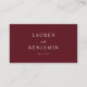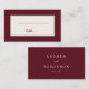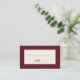 This elegant wedding place card features a minimalist design with a sophisticated maroon and cream color palette, creating an air of timeless elegance. The clean lines and simple typography exude a refined charm, perfect for adding a touch of class to your special day. With its blank spaces for customization, it allows you to personalize each table setting effortlessly, ensuring that every detail reflects the unique style of your celebration. Ideal for couples seeking a classic yet modern aesthetic, these cards will complement any wedding decor beautifully.