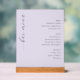 This elegant bar menu design exudes a sophisticated and timeless charm, perfect for wedding receptions or formal events. The soft lavender background paired with the flowing cursive typography creates an inviting and refined atmosphere. Featuring categories like beer, wine, and spirits in clean, modern fonts, it balances simplicity with elegance. Ideal for couples aiming to add a touch of class to their special day, this menu seamlessly complements any upscale decor while ensuring guests can easily navigate beverage options.