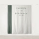 This elegant wedding backdrop features a minimalist and sophisticated design, perfect for creating an understated yet memorable atmosphere. The clean layout with simple typography exudes modern charm, while the muted color palette of soft white and deep green adds a touch of timeless elegance. Ideal for a chic indoor or outdoor ceremony, this backdrop captures a serene and refined mood, inviting guests to focus on the heartfelt moment at hand. Its customizable text area allows for personalization, making it versatile for various special occasions.
