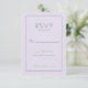 This elegant wedding RSVP card features a minimalist and sophisticated design, perfect for couples who appreciate modern simplicity. The dark background contrasts beautifully with the clean white typography, creating an understated yet refined look. With its simple lines and graceful script accents, this card exudes a sense of timeless elegance and formality, making it ideal for a chic and stylish celebration. It offers customizable text areas to personalize your message while maintaining its sleek aesthetic, ensuring that every detail reflects your special day's sophistication.
