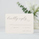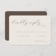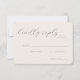 This elegant wedding RSVP card features a minimalist and sophisticated design with an understated color palette of soft, neutral tones. The typography is refined and cursive, adding a touch of timeless charm to the overall look. Perfect for couples aiming for a classic yet modern aesthetic, this card exudes a warm and inviting mood, making it ideal for capturing guests' responses in style. With customizable text areas, it seamlessly integrates into your special day's theme while maintaining its graceful elegance.