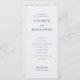 This elegant wedding program features a minimalist and sophisticated design, perfect for a modern celebration. The clean layout highlights the ceremony details with simple yet stylish typography that exudes timeless charm. A soft colour palette of muted tones creates an understated elegance, making it ideal for a refined event in any setting. Whether you're envisioning an intimate gathering or a grand affair, this design captures the essence of grace and simplicity, ensuring your special day is remembered beautifully.