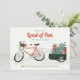 This illustrated holiday greeting card features a hand drawn image of a cheerful, red bicycle carrying a load of holiday treats, gifts, and decorations.