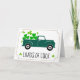 A green truck full of shamrocks and the saying "Loads of Luck".