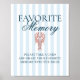 This elegant, downloadable favourite memory sign features a vintage inspired, red drawn illustration of a lobster on a soft blue striped background.