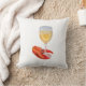 Detailed illustration of a lobster claw and glass of wine decorates this throw pillow on two sides. One side is a large image of the artwork. The other side is a smaller version of the artwork in a pattern. Perfect decorative pillow for kitchen chairs and benches and beach homes. Artwork: Colour pencil. Copyright Dominic White. All rights reserved.