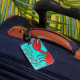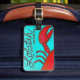 The lobster luggage tag is vibrant and fun. It features a hand-painted lobster against a vivid turquoise background, crafted from durable lucite. The tag is thick, hefty and strong. A sturdy buckle strap, in a coordinating colour, ensures it attaches securely to any luggage handle. The overall aesthetic is playful yet chic, and makes your bag noticeable at baggage claim.