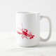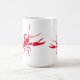 Coffee mug is shown in the classic white style with a cute red lobsters print.