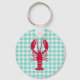 Fun keychain that goes with all sorts of coastal and summer decor themes! Design features red lobster silhouette on blue gingham background