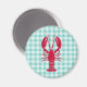 Fun kitchen magnet that goes with all sorts of coastal and summer decor themes! Design features red lobster silhouette on blue gingham background