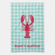 Fun kitchen towels that go with all sorts of coastal and summer decor themes! Design features red lobster silhouette on blue gingham background. Personalise with name or other message