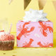 A fun wrapping paper with a fun lobster and shrimp print in pink and red. Original illustration by Carla Ellis.