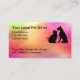 Simple local pet sitter business cards design created with a dog and cat graphic and colourful abstract background in a simple editable layout you can customise online. Designed for a home town pet sitting service.