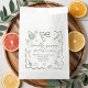 This white paper favour bag is perfect for a wholesome baby shower with an earthy, organic feel. Featuring a hand-drawn motif of veggies, herbs, and florals, it’s printed with the sweet message “Locally Grown With Love” and customised with the baby’s name and date. Ideal for homemade treats, seeds, cookies, or mini gifts. A lovely match for farm-to-table, garden, or rustic-themed showers.