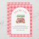 Celebrate the mum-to-be with our cute Locally Grown-themed thank you card. The design features a cute watercolor farmer's market stand on a red gingham background, making it both stylish and charming. Use the design tools to customise the text.