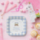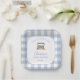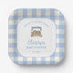 Celebrate the mum-to-be with our cute Locally Grown-themed boy baby shower paper plates. The design features a cute watercolor farmer's market stand on a blue gingham background, making it both stylish and charming. Use the design tools to customise the text.