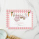 Show your appreciation in the sweetest way with this “Locally Grown” baby shower thank you card. Designed with a soft pink gingham background and delicate watercolor florals, vegetables, and greenery, this card perfectly complements a rustic garden or farmhouse baby girl shower theme.