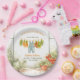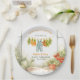 Delightful watercolor paper plates featuring a charming garden clothesline with baby overalls, fresh carrots, tomatoes, and potted plants under the message "Locally Grown is on the way" – the perfect whimsical touch for your Locally Grown Little Sprout Garden Baby Shower! These sturdy, neutral-toned plates bring farm-fresh joy to every table as guests celebrate the arrival of your little sprout.