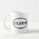 Check out this "Location Location" mug! Do you love your hometown? Do you have a friend or family member who has pride for their hometown? If so, this "Location Location" mug is exactly the gift that you're looking for! The design features the city in big black lettering and the region in tiny black lettering surrounded by two black ovals, one thin and one thick.