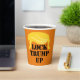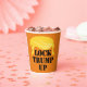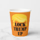 Donald Trump's four indictments inspired me to create this funny, Lock Trump Up design topped with his golden hair! Shown here on a paper party cup. Customise it with your own text, colours, and more. Great for indictment parties, trial parties and for the entire presidential election season! Lock him up!