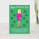 Funny Cartoon of a woman who hasn't had her hair cut since lockdown began clutching a bottle of wine and a wine glass to celebrate St Patrick's Day. Caption reads 'Happy St Patrick's Day' and 'Name hadn't had her hair cut since lockdown but luckily see could still see well enough to pour the wine'. Easily personalise this card by editing the template text. Thank you for viewing my cartoon designs!