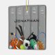 Locker Room Design Ornament, featuring various sports' equipment in front of a set of lockers. All text customisable, front and back!