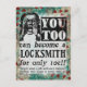 Locksmith vintage advertisement in turquoise, aqua, red and black. Arty, funny, colorful and fun, it makes a great gift and will surely bring smiles and laughter to the recipient.