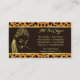 This is a business card designed for a hair braiding african / caribbean hair loctician or salon. The background consist of gold and animal print.