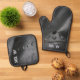 Elevate your kitchen decor with these edgy black metal oven mitt and pot holder set. Featuring a chic industrial design with rivet accents, these pieces are both functional and decorative. Perfect for the modern loft or industrial-themed kitchen, this set also makes a thoughtful personalised gift.