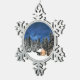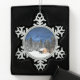 Log Cabin Mountain View Snowflake Pewter Christmas Ornament