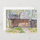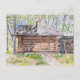 watercolor painting on a postcard. A log sauna in the woods, in the springtime. painting by Kristina Anderson