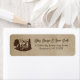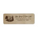 Customised address labels featuring a log home with a mountain and woodland scene, over a rustic Kraft paper style look.