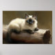 "Log Lounger" is a heartwarming painting that captures the essence of a lazy afternoon in nature. At the centre of the canvas, a young Siamese cat is comfortably rests on a thick wooden log. Its bright blue eyes gaze serenely at you, while its soft white and brown fur creates a gentle contrast with the texture of the log.