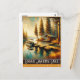 With its bold use of contrasting colours and the subtle dripping paint effect, this postcard exudes a sense of movement and spontaneity, drawing you into its depths with each glance. Whether you're a collector of vintage travel posters or simply seeking a unique piece of art, this postcard is sure to captivate your imagination.